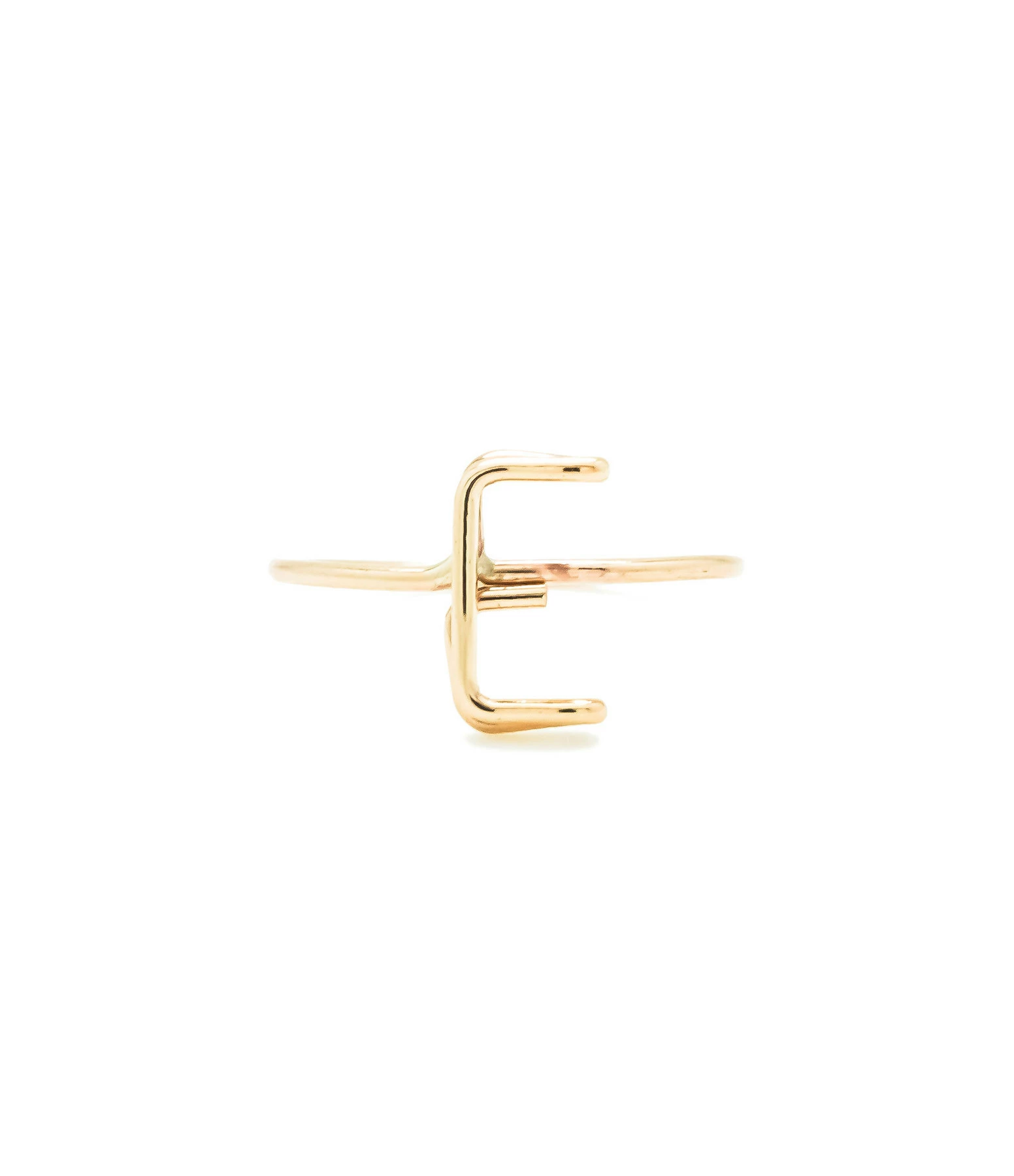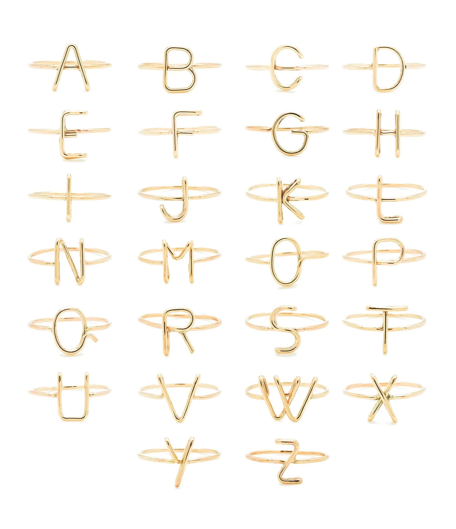Bague composée d’un seul et même fil d’or jaune, formant une lettre majuscule.