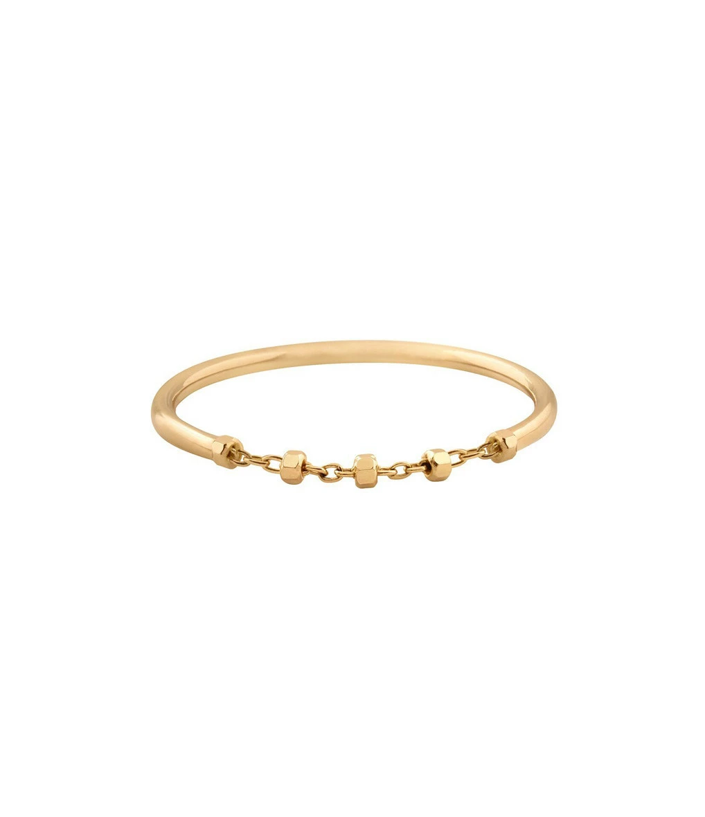 Bague en or jaune composée d’une chaîne souple en maille diamantée (ornée de petites perles facettées).