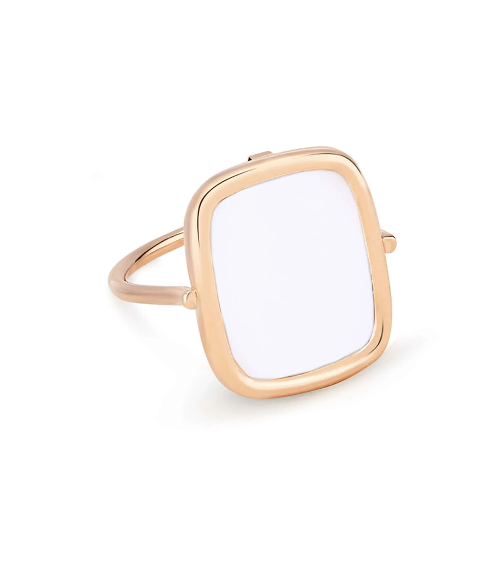 Bague en or rose avec motif carré en nacre noire.
