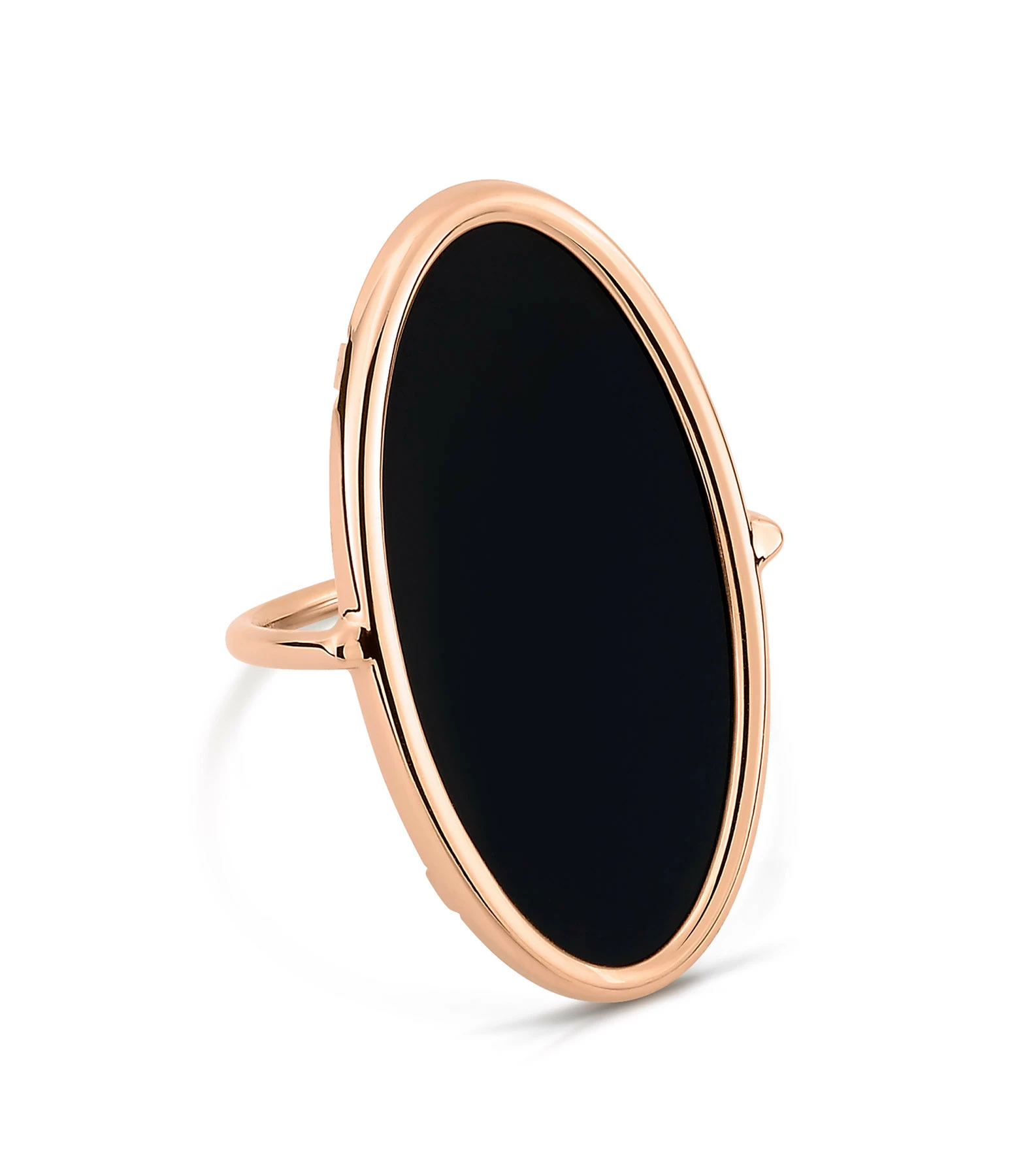 GINETTE NY Bague Ellipse Or Rose Onyx