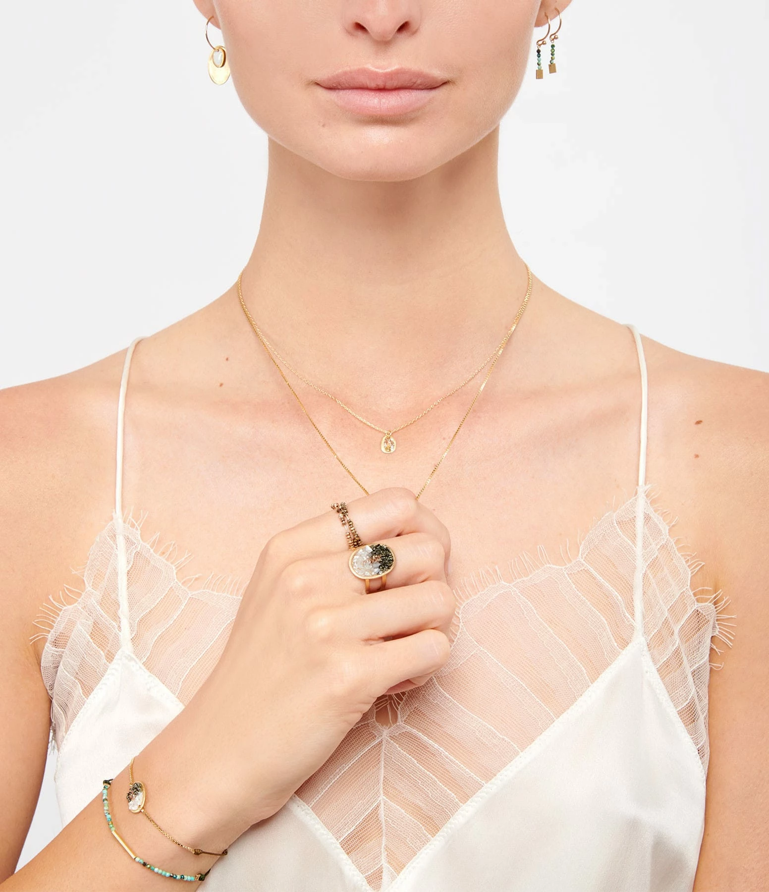 Plus d’infos : Fabriquée artisanalement avec des pierres naturelles, des nuances de taille, de couleur et de forme peuvent apparaître sur les bijoux.