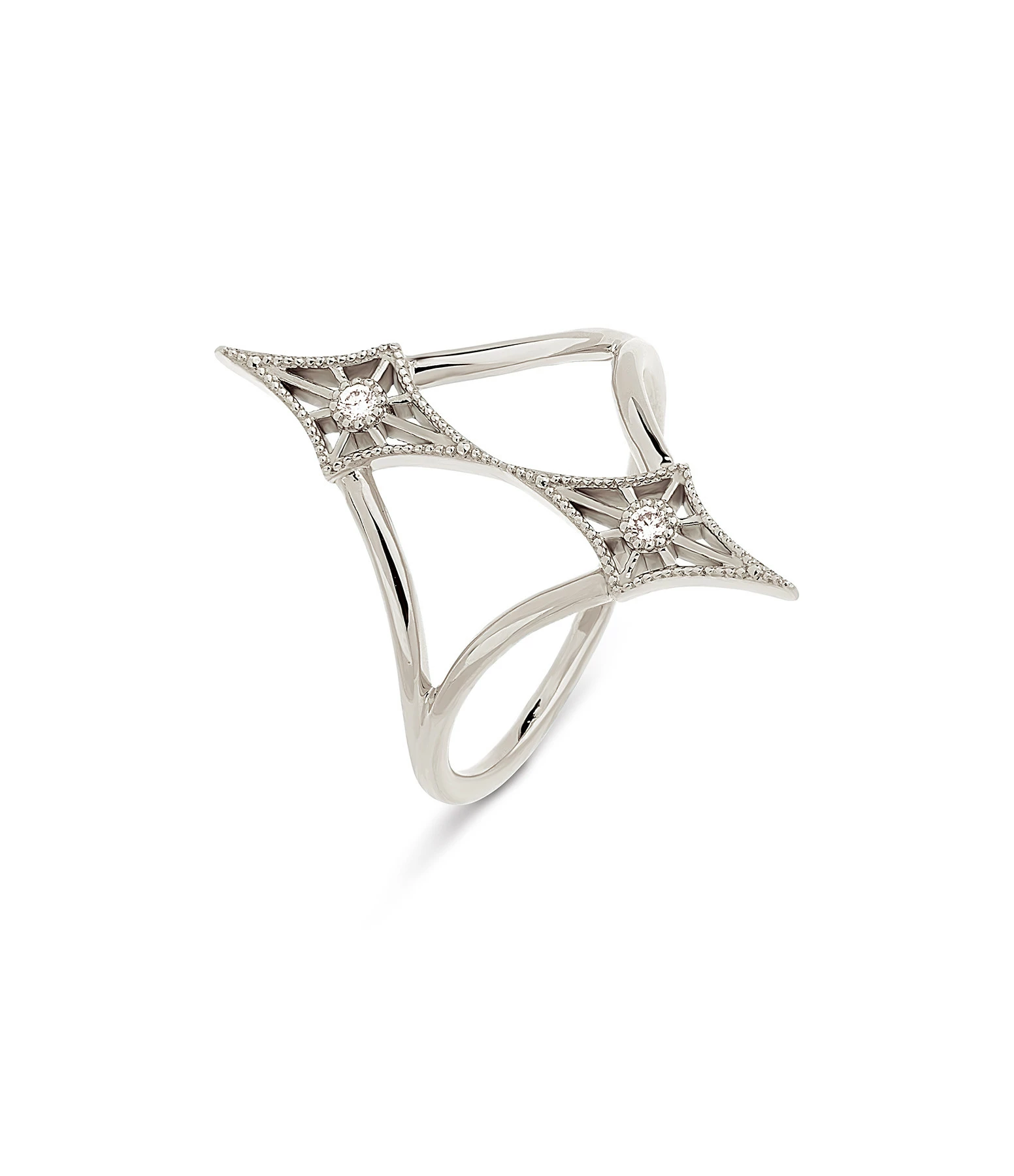NAVA JOAILLERIE Bague Cheyenne Losange Double Diamants Or Blanc