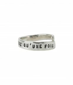 Bague en argent avec gravure “Le bonheur ne passe qu’une fois”.