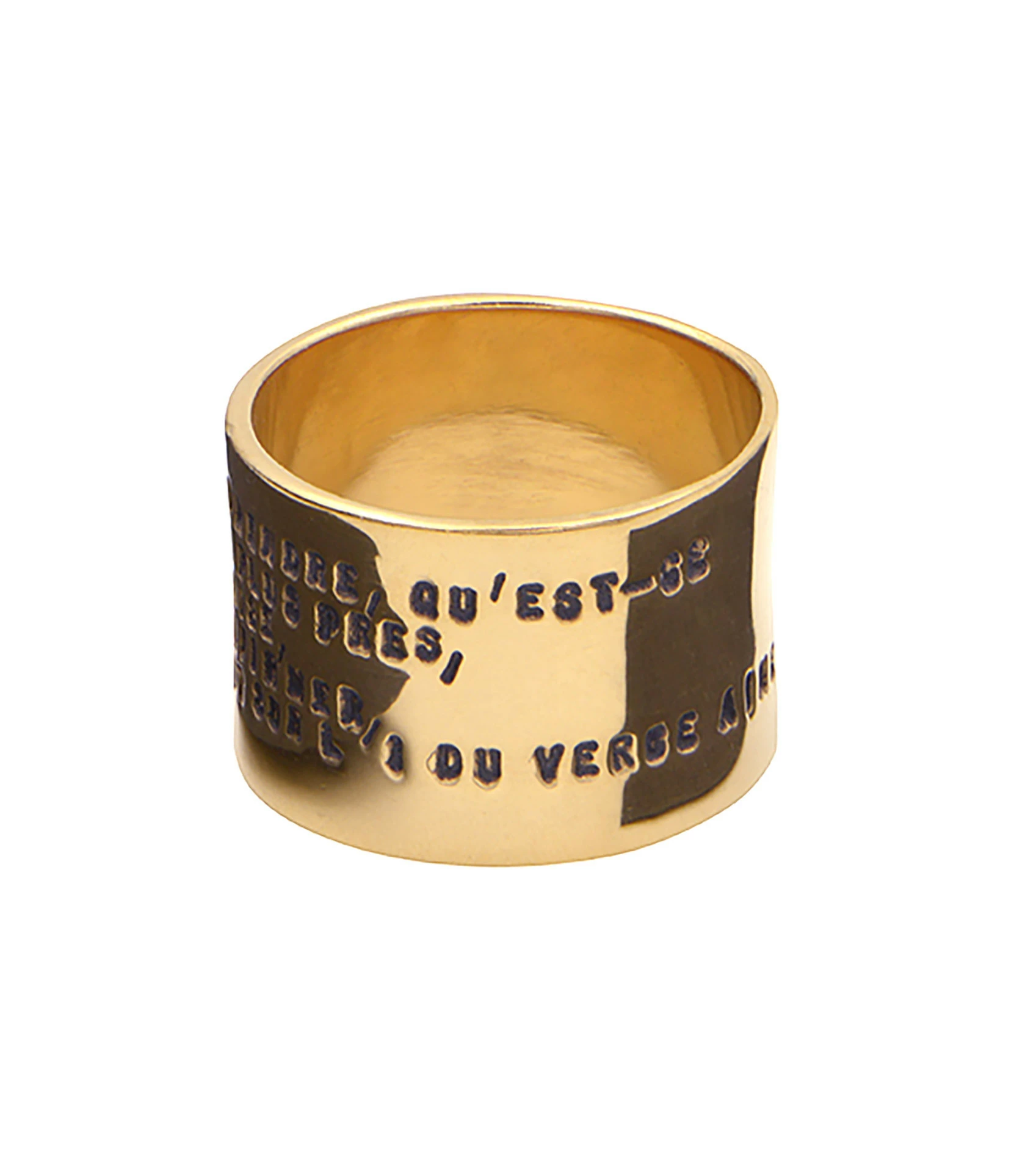 Bague en vermeil avec gravure “UN BAISER, MAIS À TOUT PRENDRE, QU’EST-CE UN SERMENT FAIT D’UN PEU PLUS PRÈS, UNE PROMESSE PLUS PRÉCISE, UN AVEU QUI VEUT SE CONFIRMER, UN POINT ROSE QU’ON MET SUR L’I DU VERBE AIMER” Edmond Rostand (Cyrano de Bergerac).