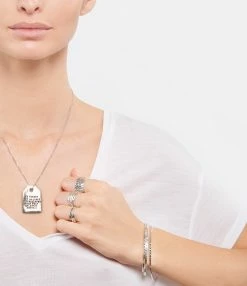 Conseil d’entretien : Afin de conserver longtemps la patine noire dans la gravure de votre bijou, évitez les contacts avec l’eau les premières semaines. L’argent est une matière naturelle qui se patine avec le temps, sa couleur évoluera selon l’acidité de votre peau et les conditions atmosphériques. Utilisez un chiffon doux et un produit adapté pour le nettoyer en évitant d’effacer la patine, rincer abondamment, puis essuyez.